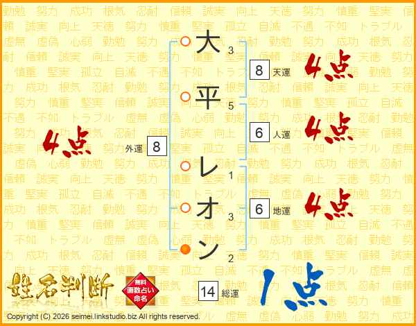 大平 れおんさんの名前の鑑定結果は 姓名判断ネット